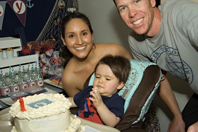 Here I am wearing my coordinating nautical dress along with Jake in his t-shirt that I decorated with a "1" and a crab applique that I purchased from the etsy shop, Ella Ba' Dellas Handmade Appliques.